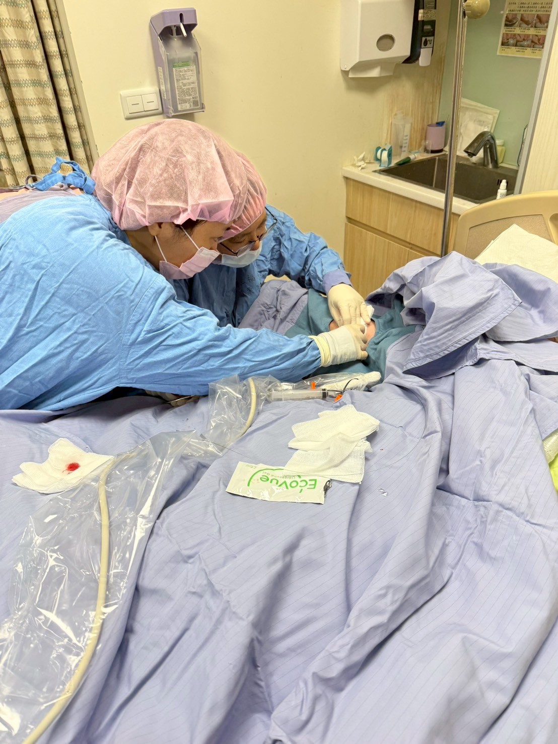 在建置PICC長期點滴管路過程中,醫療人員全程以超音波引導並嚴格遵守無菌操作規範,確保置管位置精準與安全。完成置管後,抗生素及相關靜脈點滴治療皆可透過同一管路進行,大幅減少反覆扎針需求,病人與家屬對治療過程的焦慮也隨之降低。